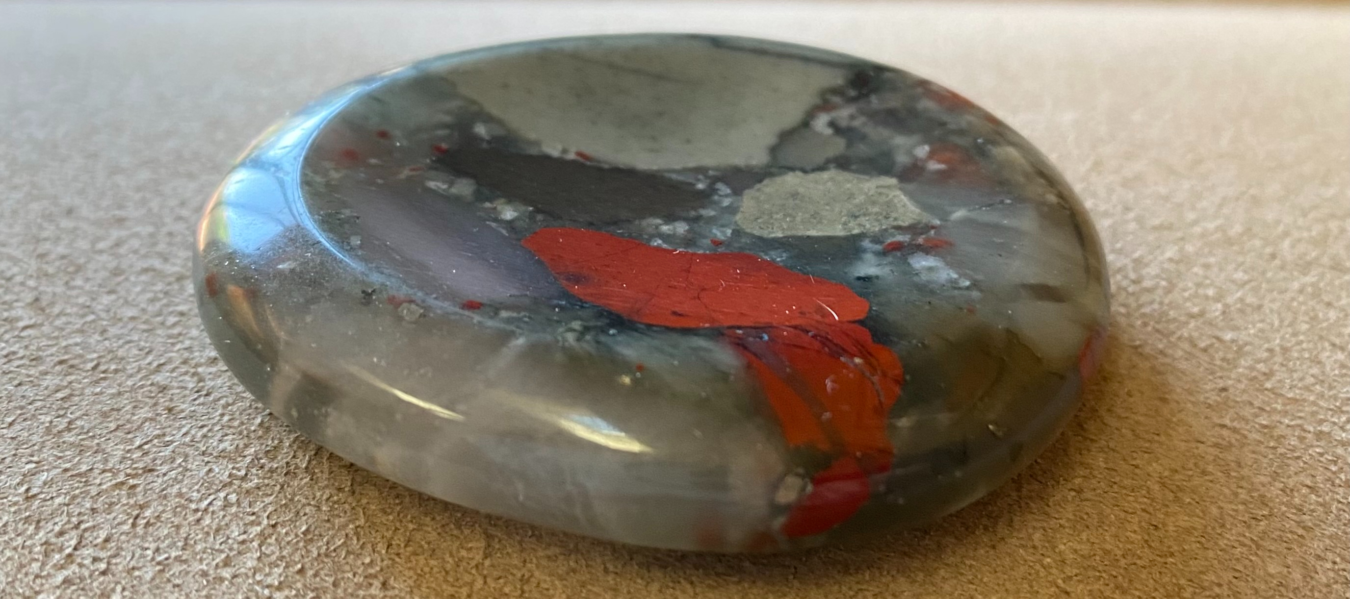 I experimented this time with the addition of a worry stone. I held it in my right hand so that I could move my thumb in circles around the center. I found it helpful in bringing myself back to the room for a brief moment, which offsets the overwhelming feeling of drifting away into the bizarre soup of my internal universe, never to be seen again.